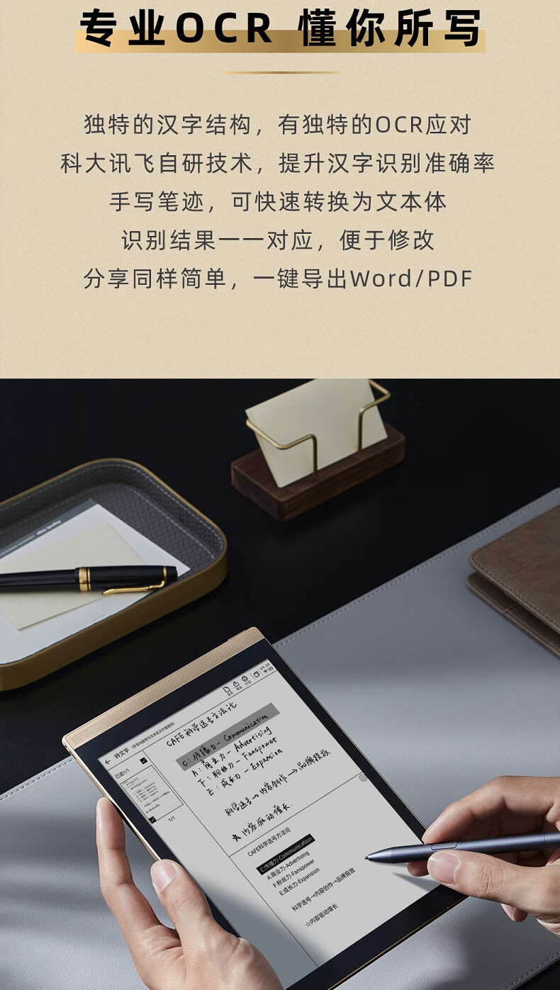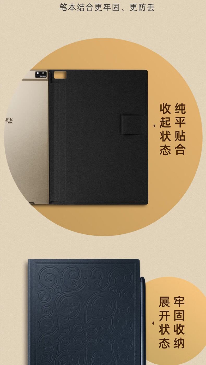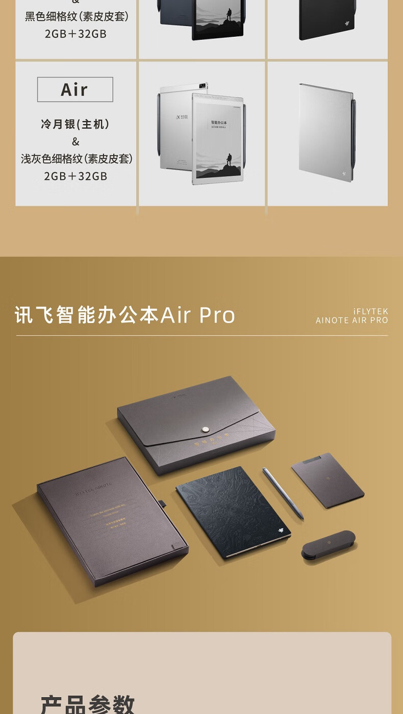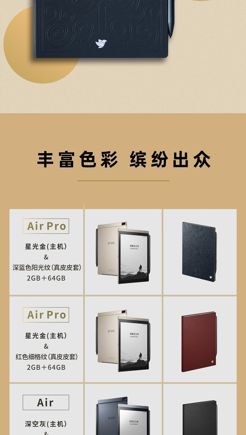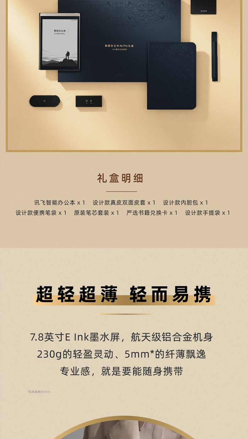 商品名稱:科大訊飛智能辦公本Air Pro 7.8英寸電子書閱讀器 墨水屏電紙書 電子筆記本 語音轉(zhuǎn)文字 星光金+陽光紋深藍保護套