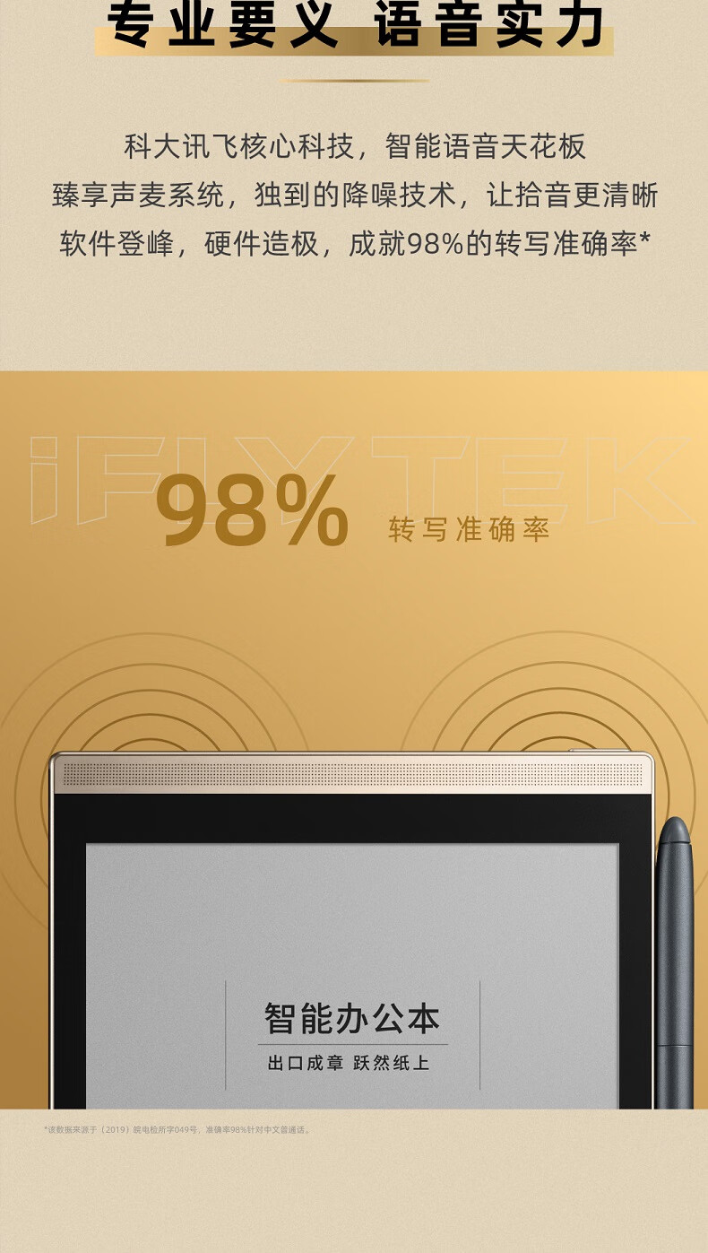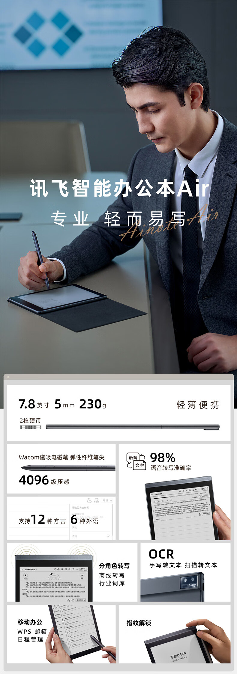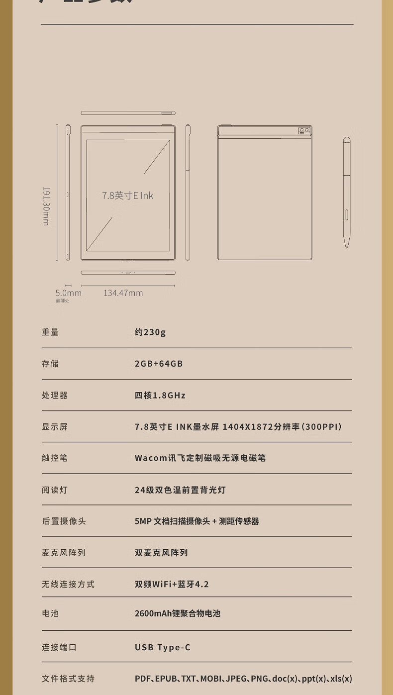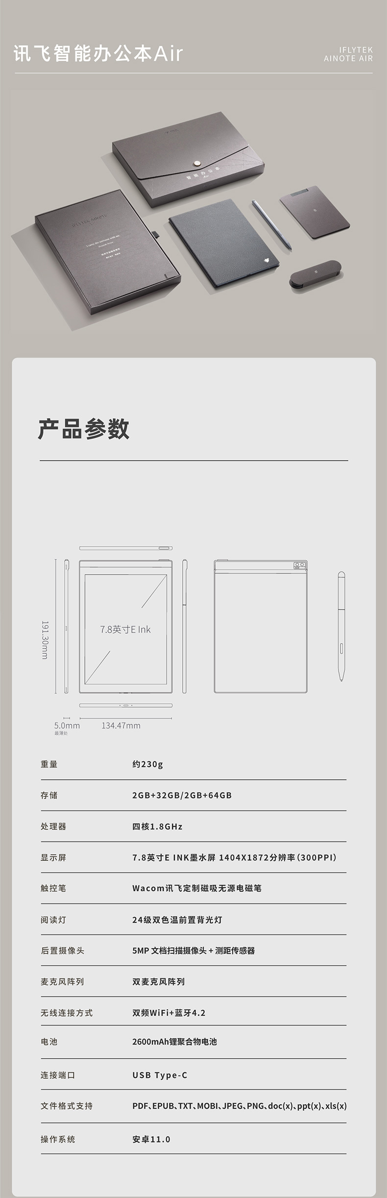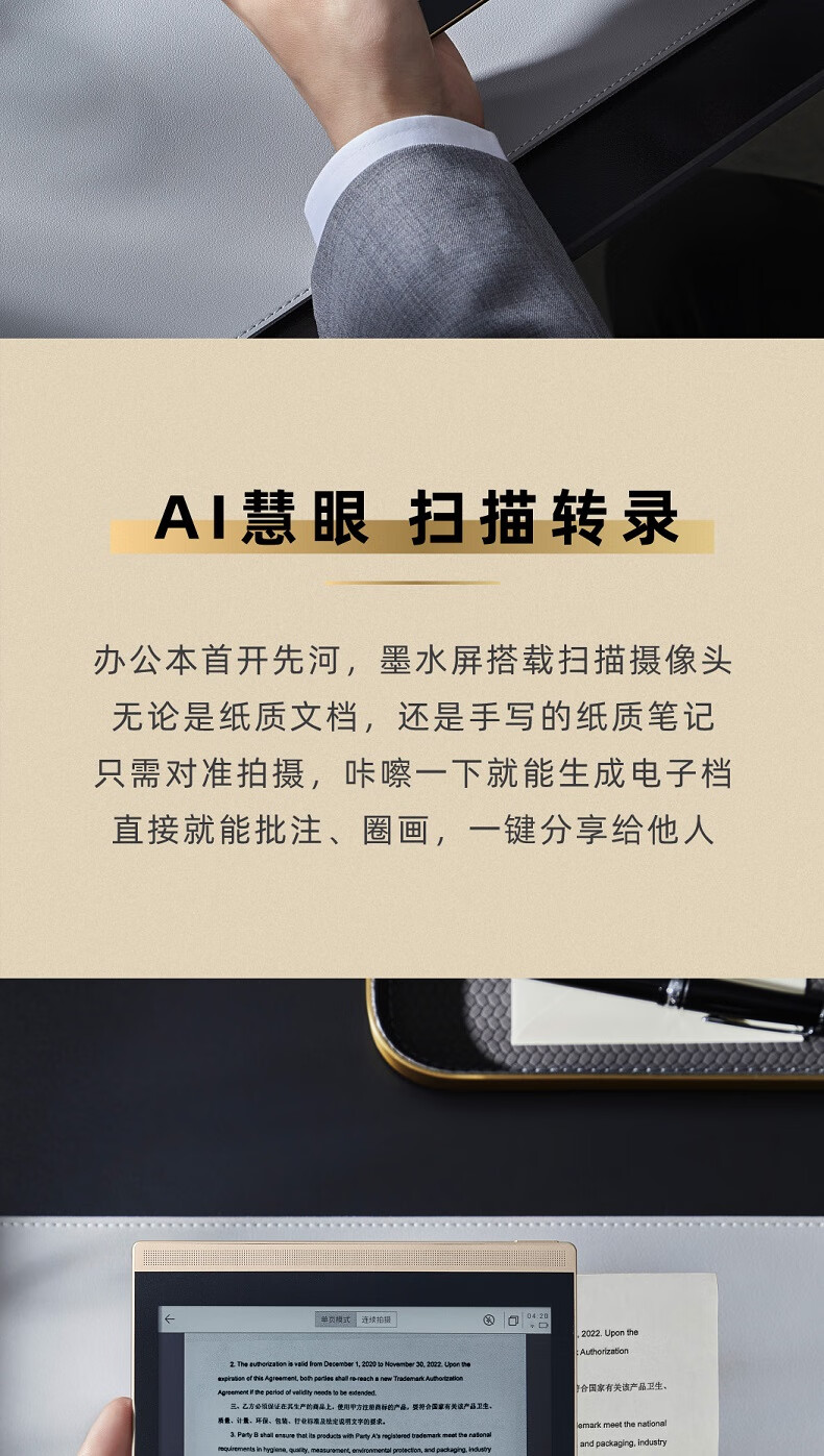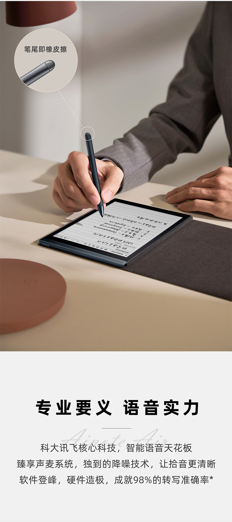 商品名稱:科大訊飛智能辦公本Air Pro 7.8英寸電子書閱讀器 墨水屏電紙書 電子筆記本 語音轉(zhuǎn)文字 星光金+陽光紋深藍保護套