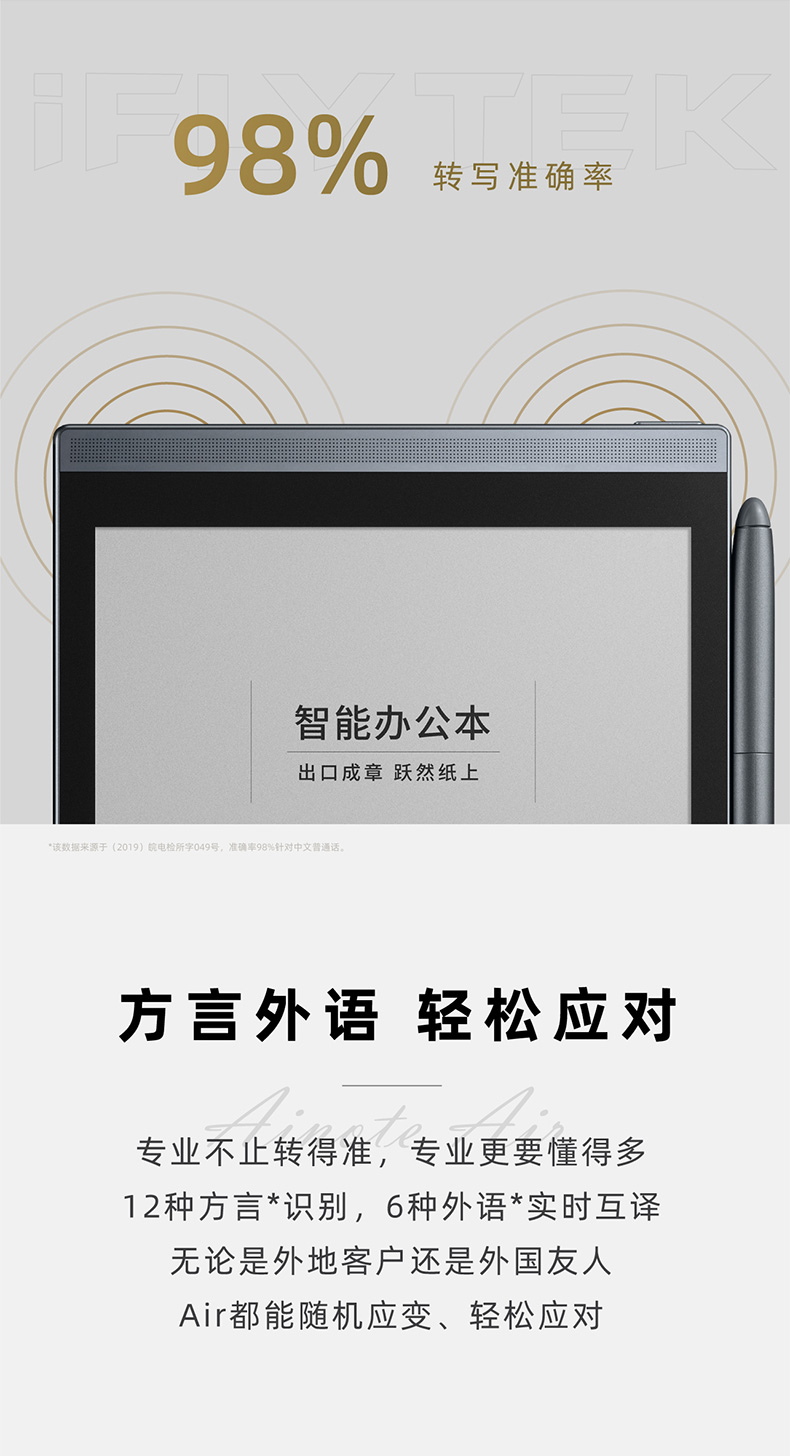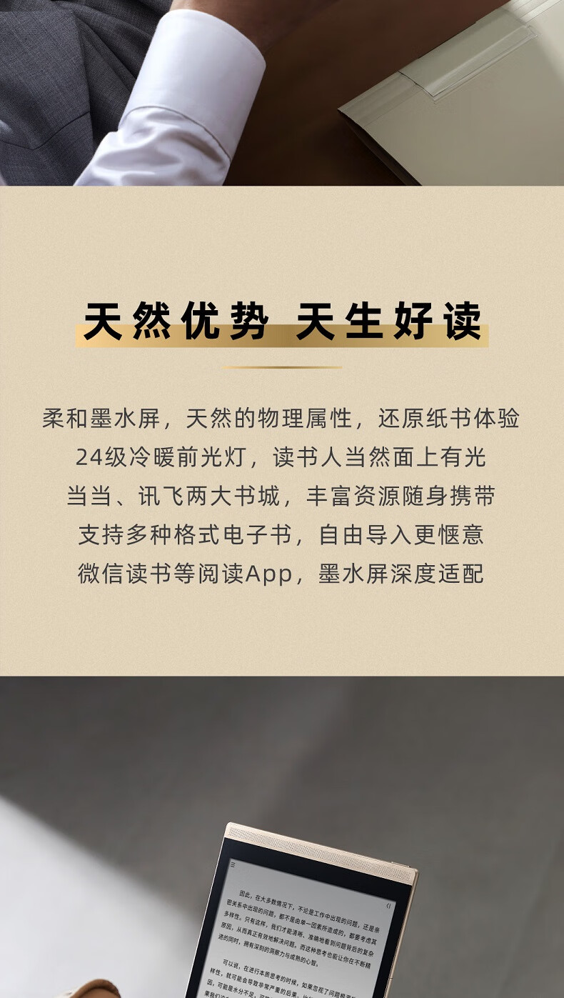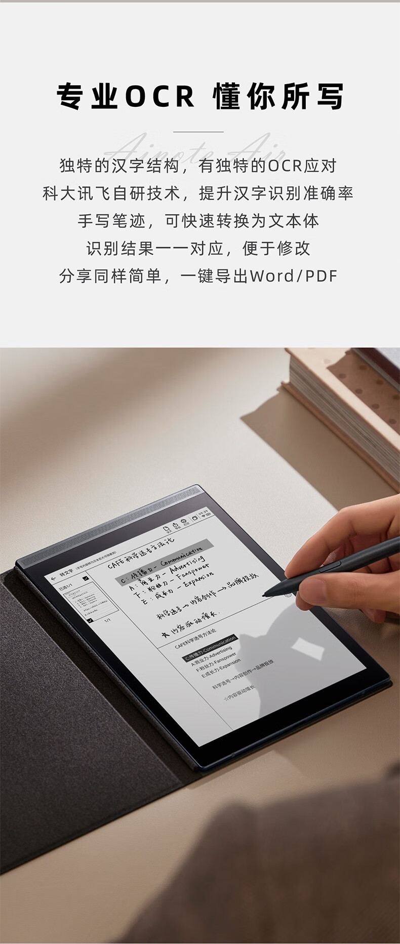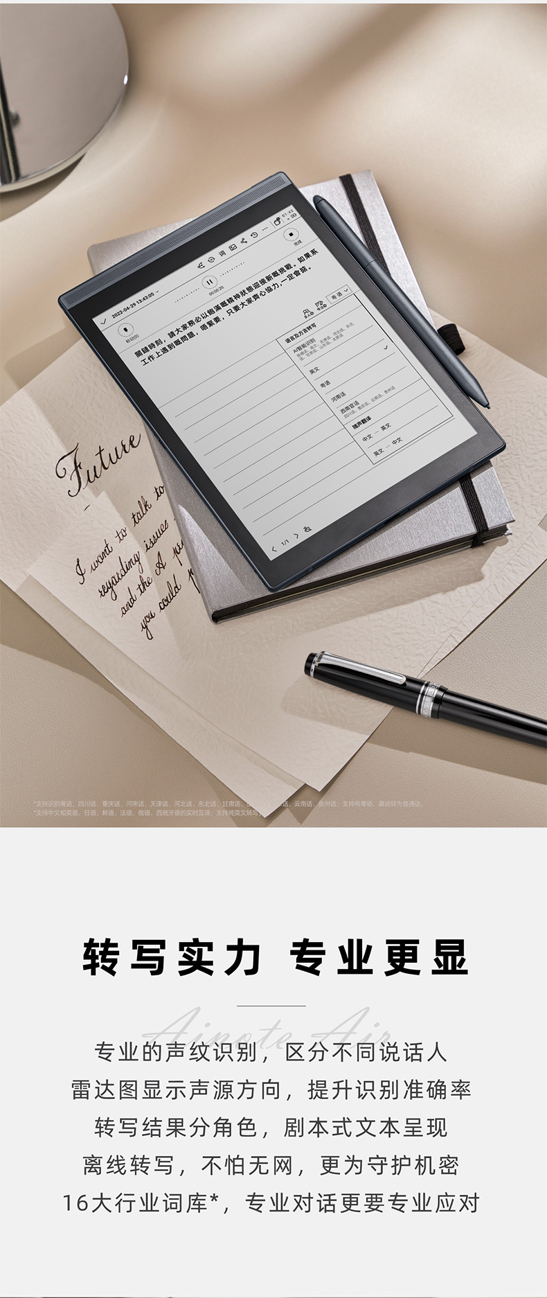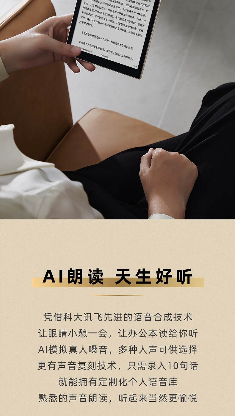 商品名稱:科大訊飛智能辦公本Air Pro 7.8英寸電子書閱讀器 墨水屏電紙書 電子筆記本 語音轉(zhuǎn)文字 星光金+陽光紋深藍保護套