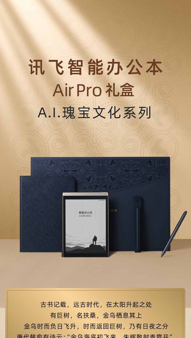 科大訊飛智能辦公本Air Pro 7.8英寸電子書閱讀器 墨水屏電紙書 電子筆記本 語音轉(zhuǎn)文字 星光金+陽光紋深藍保護套